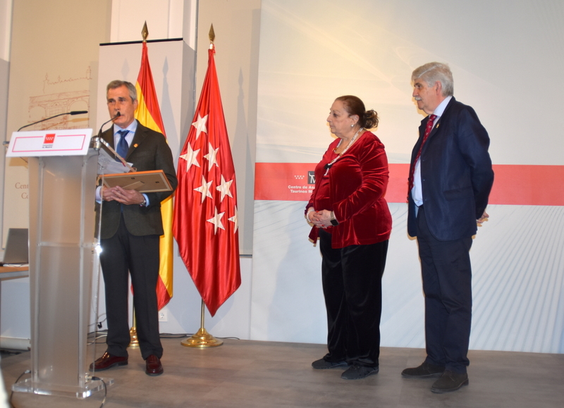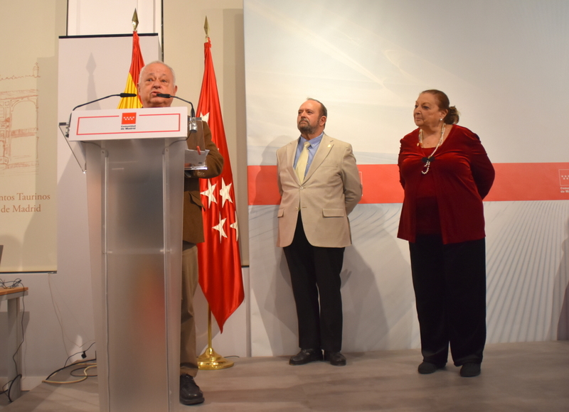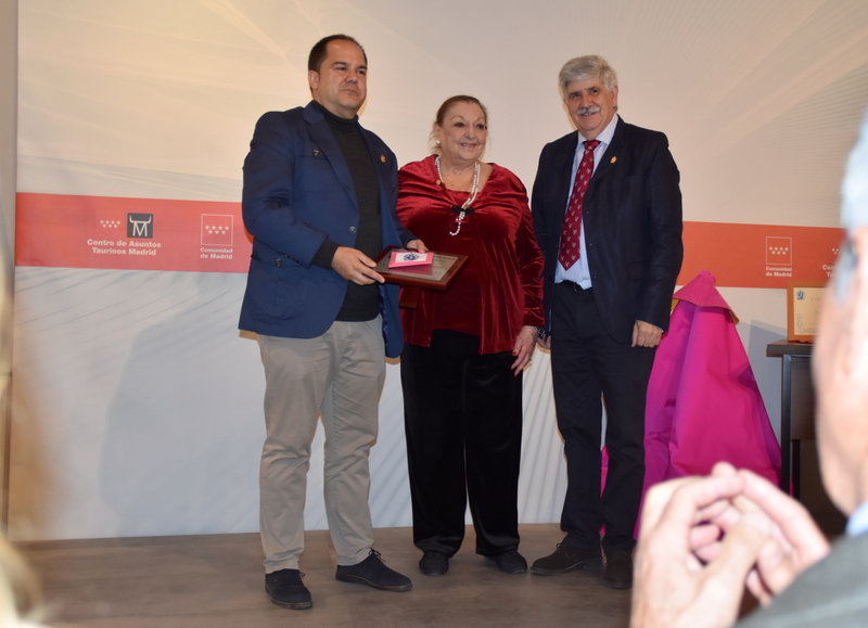 Hubo además un reconocimiento a la labor de difusión que realiza la televisión pública de la Comunidad de Madrid, Telemadrid, no solo por la retrasmisión de los festejos de muchas plazas de la comunidad y de la praza más importante del planeta taurino, sino por su cobertura en diferentes programas y noticiarios. No pudo recoger el reconocimiento del Alfonso Nasarre, director de programas de la entidad, y en su nombre recogió el galardón el conocido periodista, voz taurina de la cadena, Sixto Naranjo. Acompañando a Sixto se encontraba entre el público el comentarista taurino Federico Arnás.