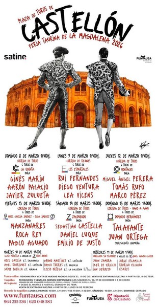 El domingo día 8 de febrero, toros de Torrealta para Uceda Leal, Juan Ortega y Pablo Aguado.