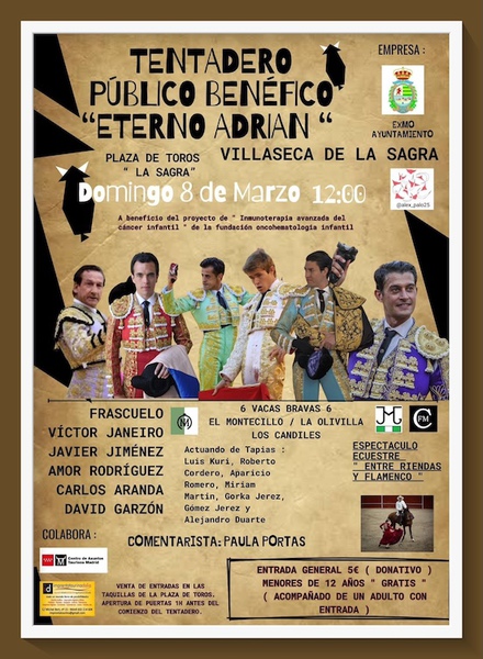 El viernes 6 de febrero una novillada de Jiménez Pasquau para los novilleros Álvaro Serrano, Mario Vilau, Julio Méndez, Sergio Rollón, Félix San Román y Samuel Castrejón, que debutará con picadores.